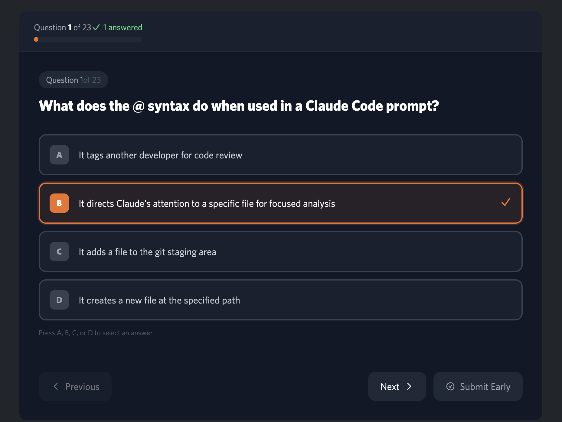 You can now test your knowledge after completing a course or video. Quizzes support multiple choice, true/false, fill-in-the-blank, and code challenges. And, we offer explanations with each answer, so you understand why an answer is correct, not just that it's correct.